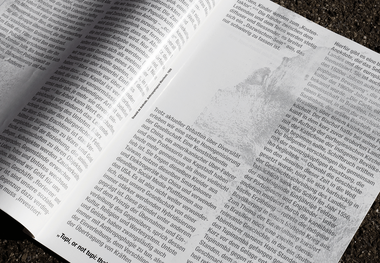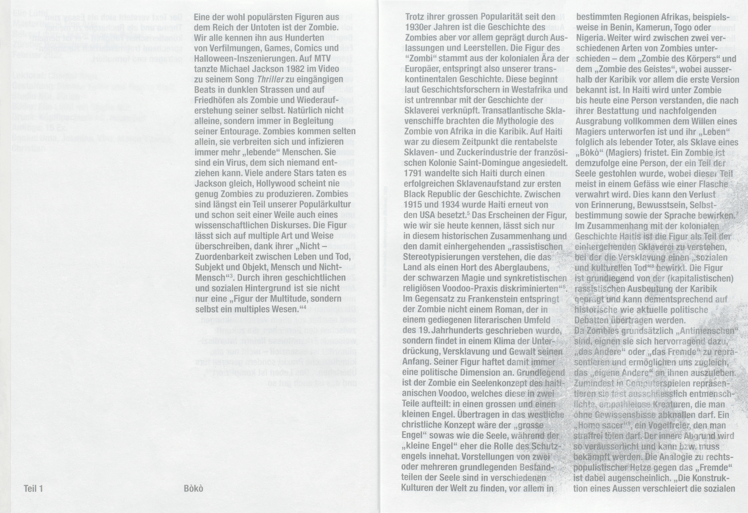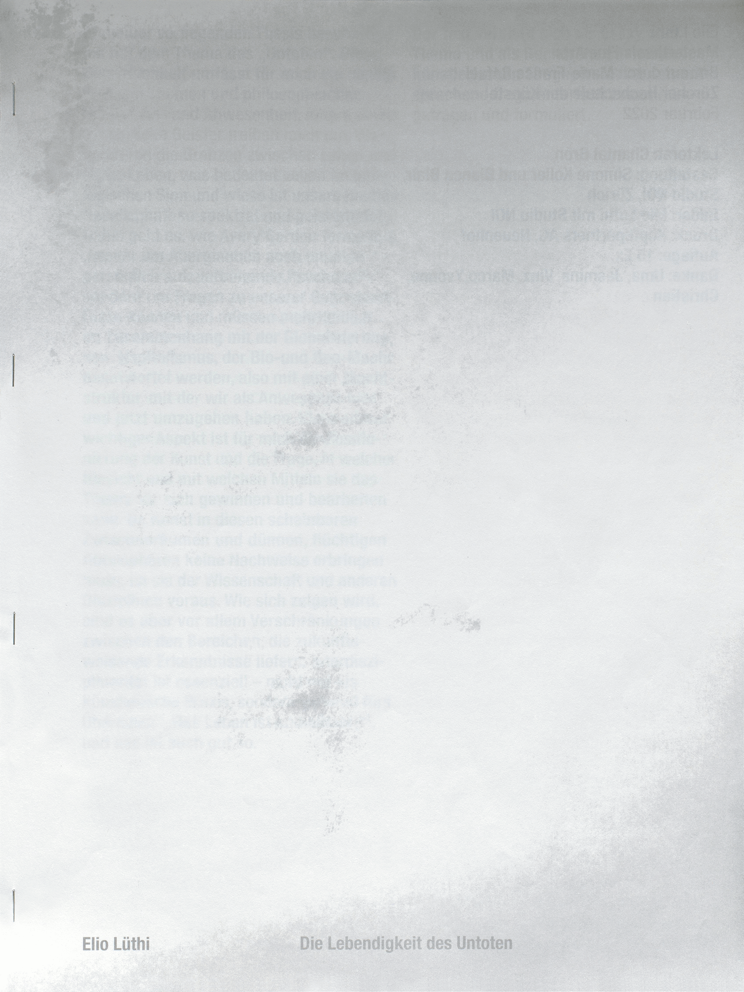 Design of the master’s thesis by artist Elio Lüthi which deals with the topic of the ‘undead’. The text is overlayed with a series of abstract images created together with Elio Lüthi, based on a series of direct prints of the artist’s body.