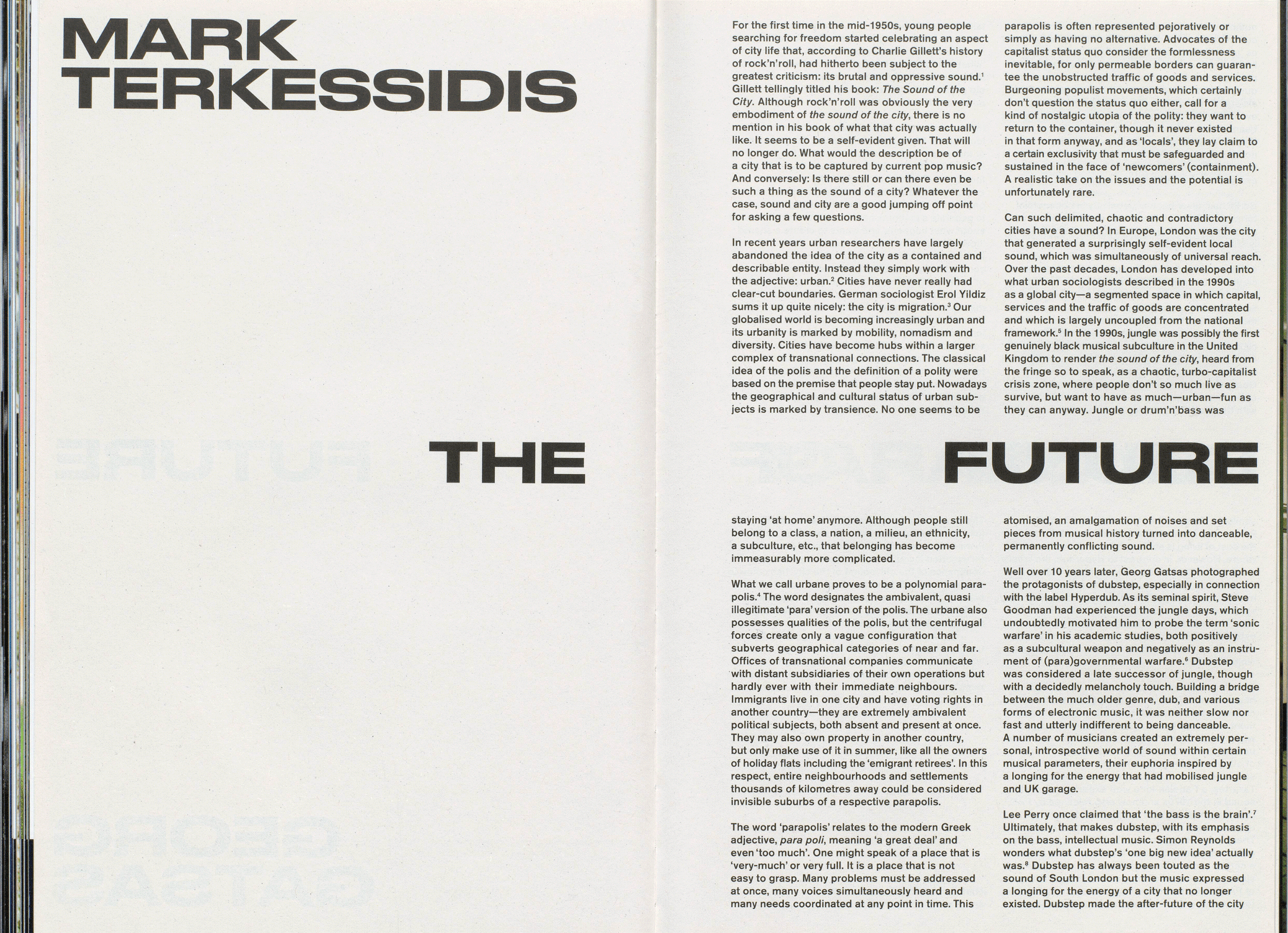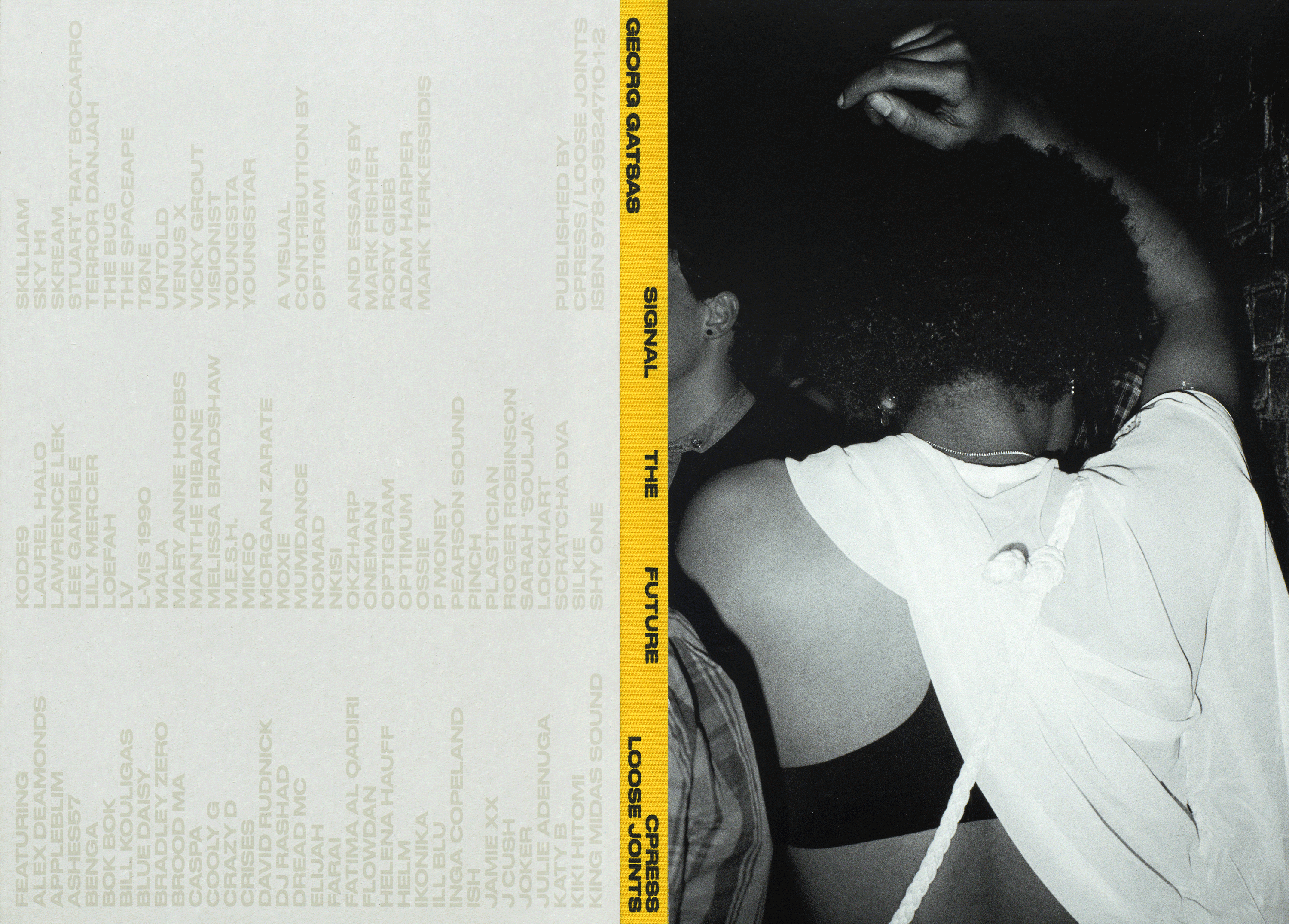 Book by artist and photographer Georg Gatsas, tracing the development of the London dubstep scene. Signal the Future documents a music genre in the flush of fame, conveying the physical experience of a club night through portraits of key figures, interspersed with cut-up black and white shots of clubbers. In the book’s essay section, large typographic statements bisect the text to express the brutal acceleration of the city’s gentrification.