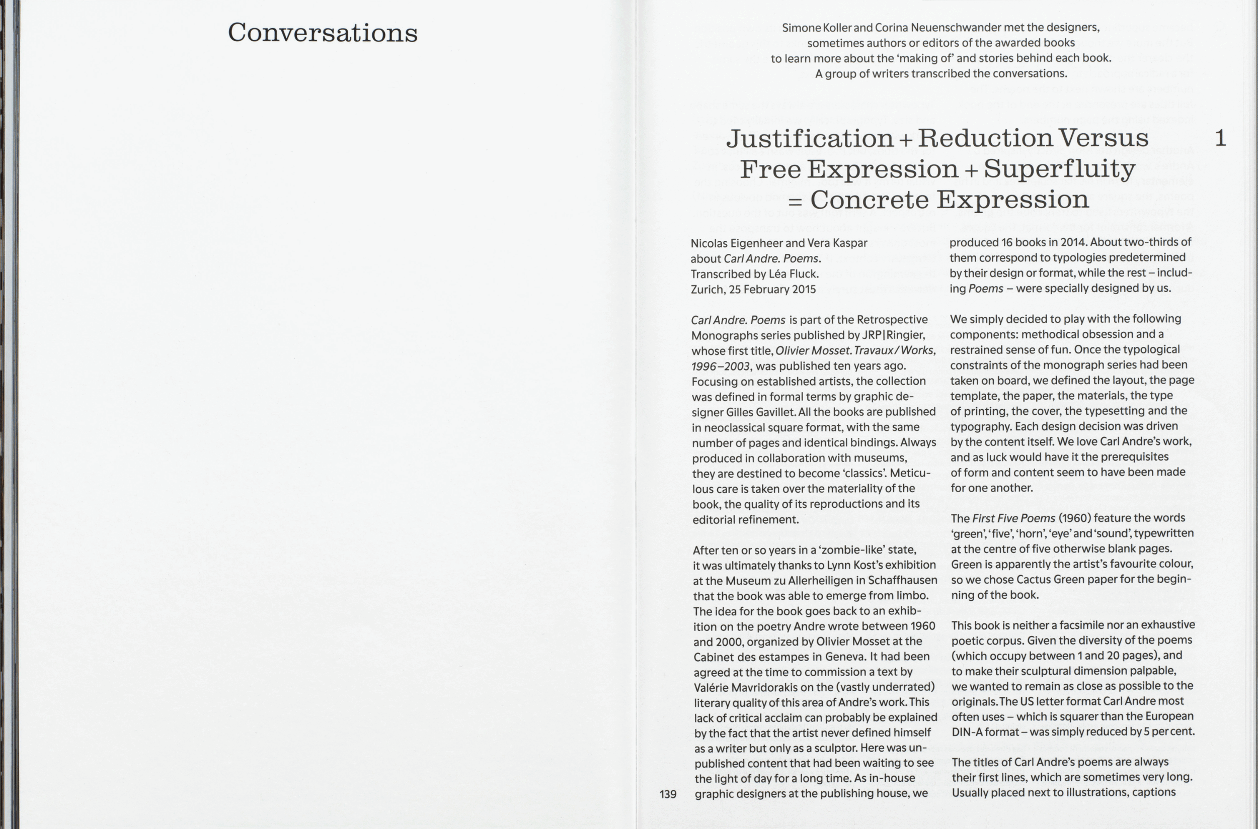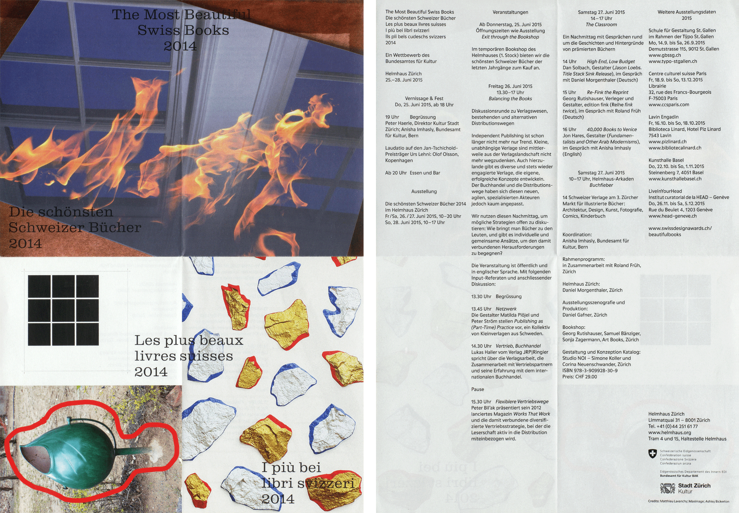 Catalogue for the 2014 edition of the Swiss book competition. Each of the awarded books are captured from different perspectives – in terms of both form and content – beginning with visual portraits by 18 photographers, and concluding with conversations on the collaborative process between the awarded designers, authors and publishers.
