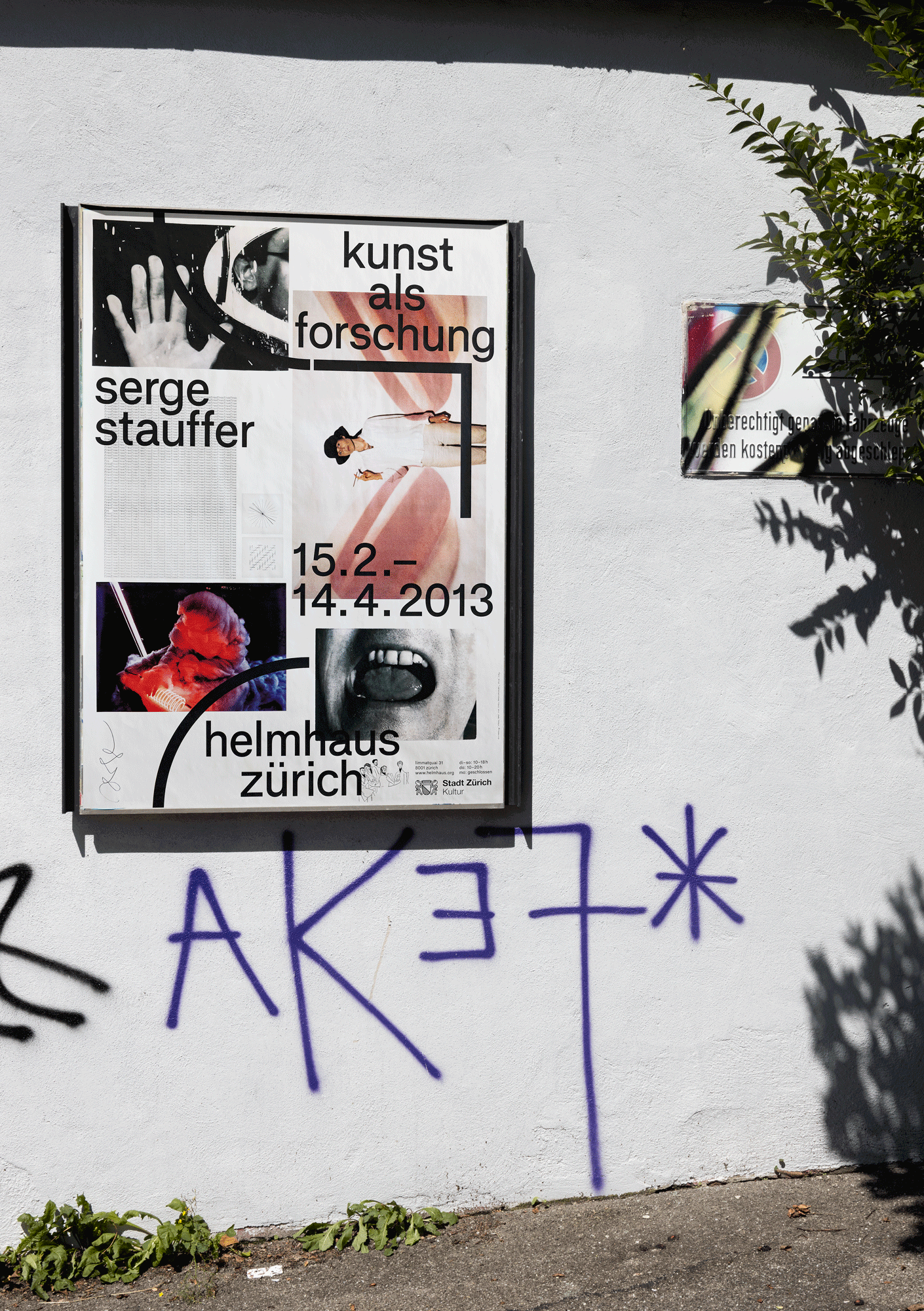 Visual identity for the exhibition Serge Stauffer: Art as Research at Helmhaus Zürich, curated by Michael Hiltbrunner. The design of the flyer refers to Stauffer’s card game Jardin publique which was shown in three-dimensional form in the exhibition.