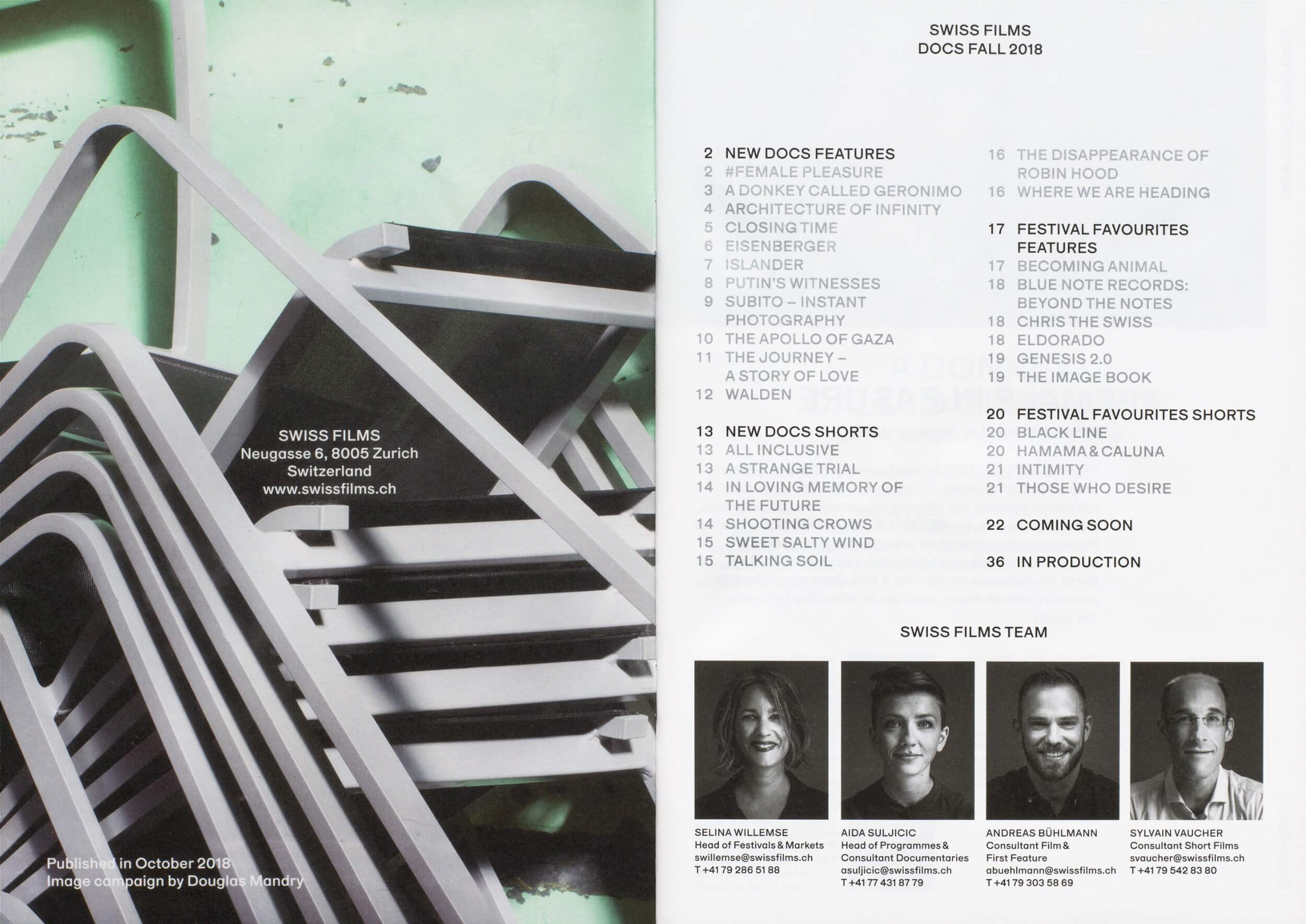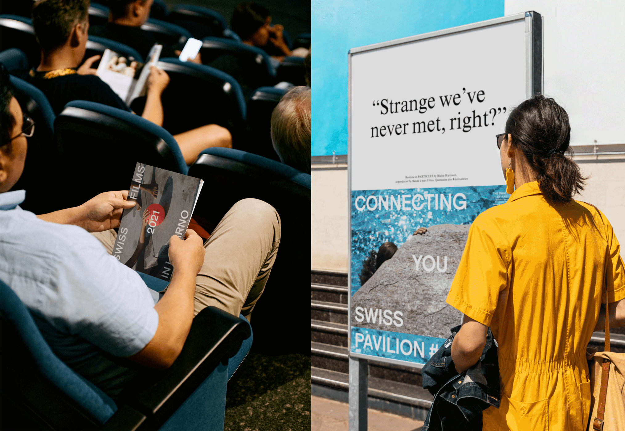 Identity for SWISS FILMS, the national agency which supports and promotes Swiss filmmaking worldwide. Rather than using film stills, selected movie quotes are combined with newly commissioned, contextual visuals to capture the atmosphere and traits of film festival host cities.