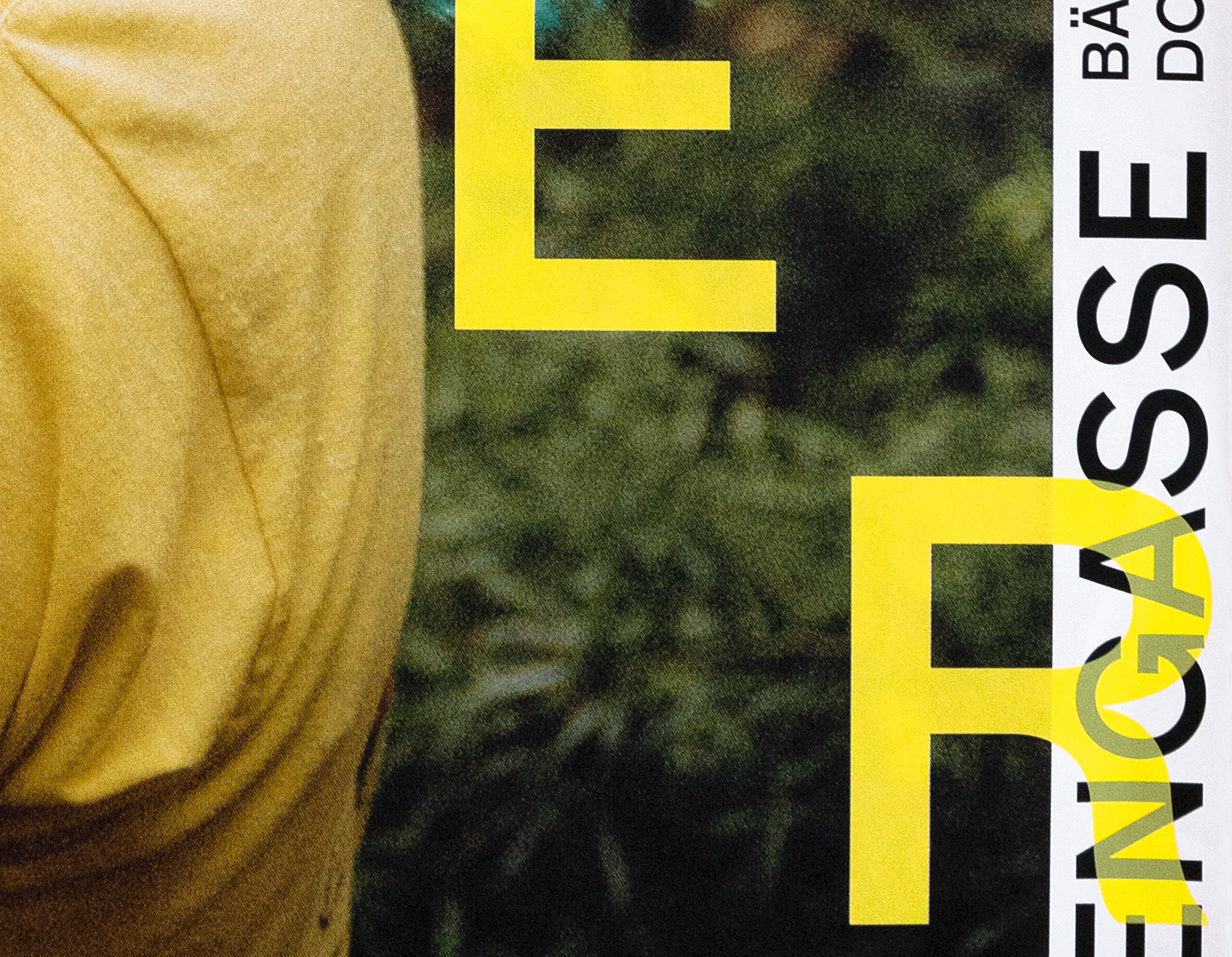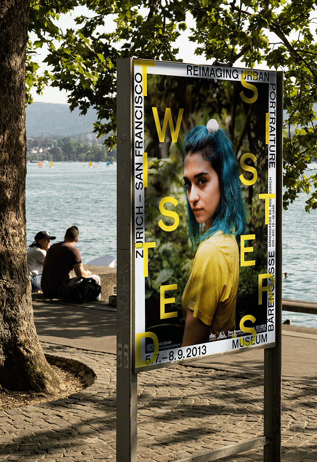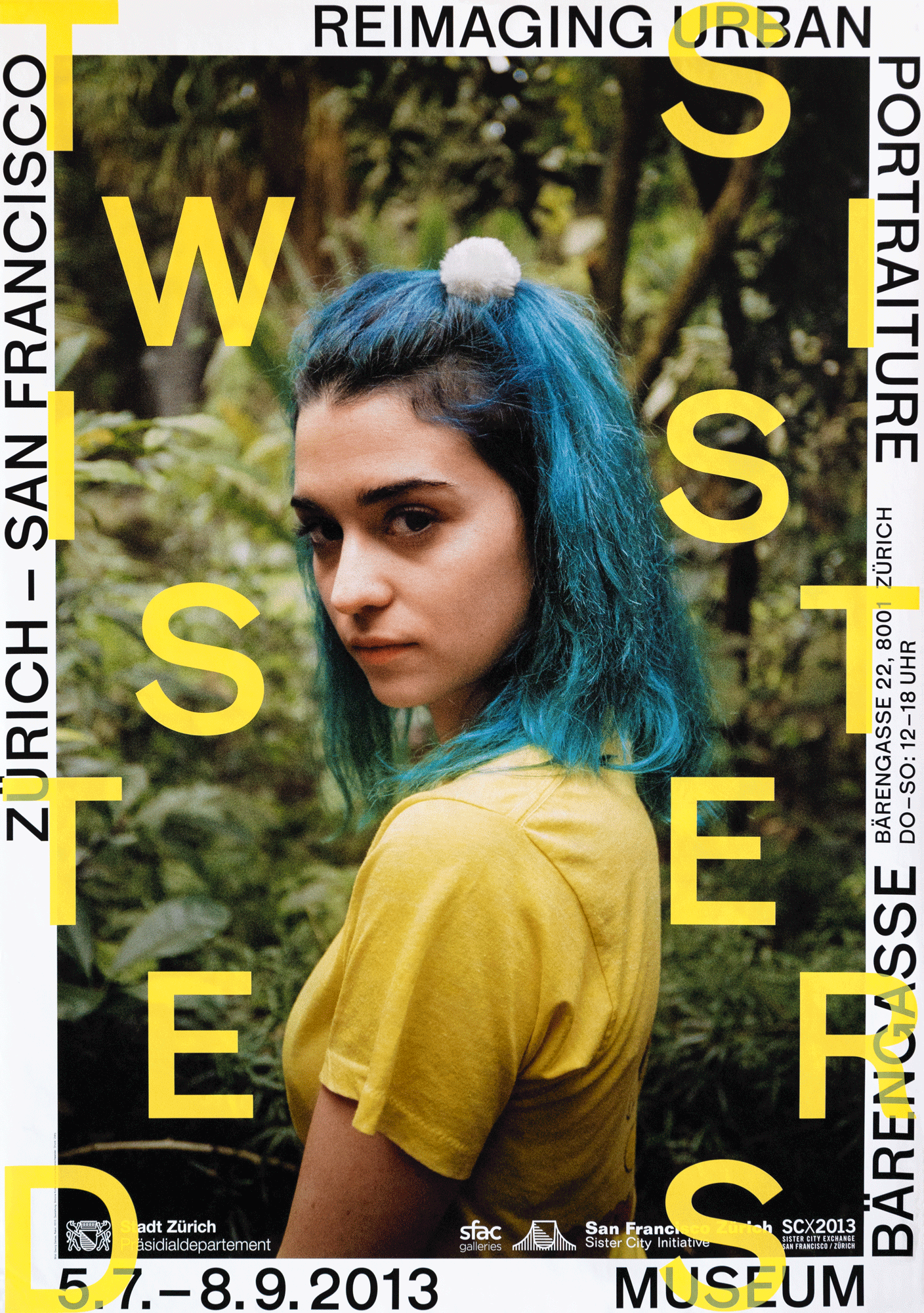 Poster for a group exhibition at Museum Bärengasse, showing artists from Zurich and San Francisco. We used a photograph by Georg Gatsas, framed by the title, subtitle and sub-subtitle of the show.